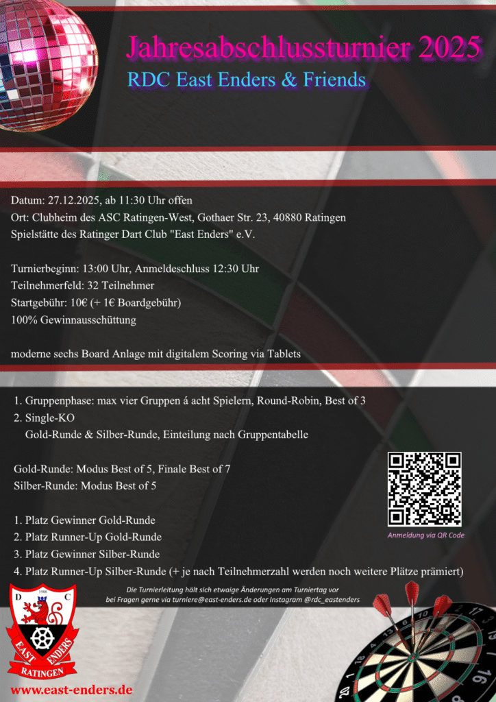 - Samstag, den 27.12.2025 – offenes Jahresabschluss Turnier 2025